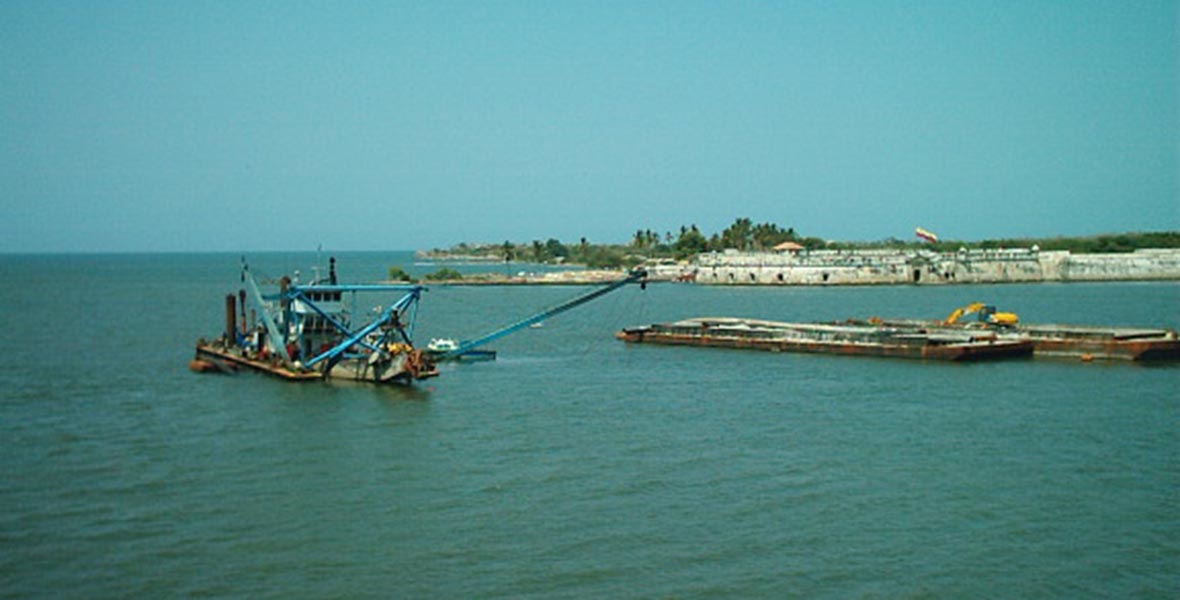 Dragado de profundización Canal de Acceso a Cartagena sector Bocachica y obras de protección de los fuertes en San Fernando y San Jose (2004, 2006 y 2009 a 2011), utilizando la draga Heroica II.