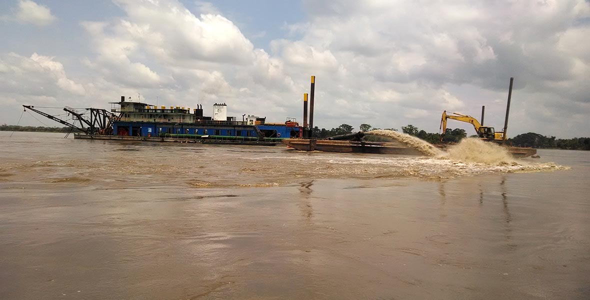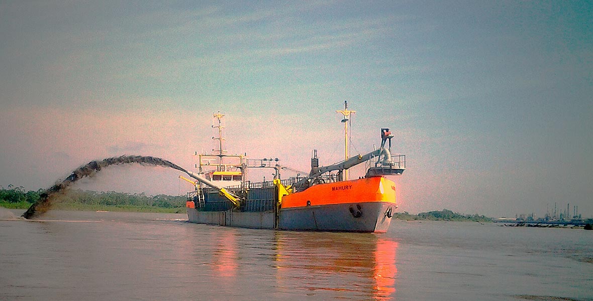 Mantenimiento del canal navegable mediante dragado hidráulico en el río magdalena en el sector comprendido entre Puerto Salgar/ La Dorada (Cundinamarca/Caldas) – Barrancabermeja (Santander).” Utilizando las dragas de corte Rio Magdalena y Don David, draga de succión en marcha Mahury.