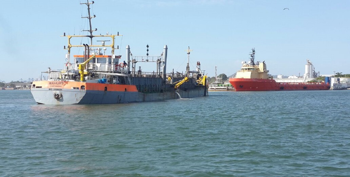 Relimpia del muelle SHOREBASE de COREMAR en Cartagena. Utilizando la draga Mahury.