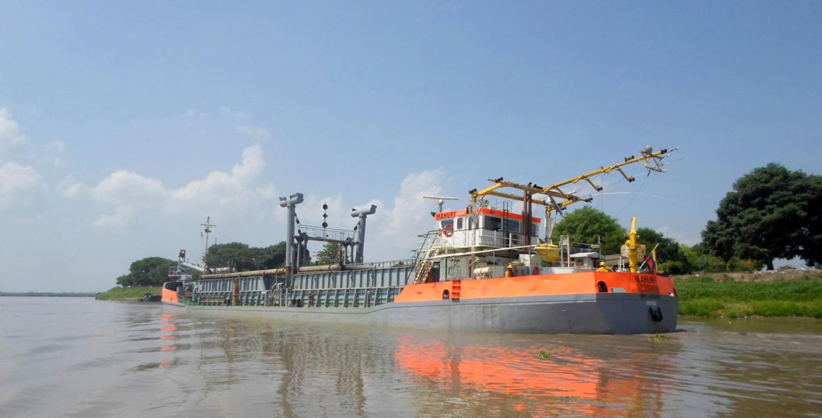 Mantenimiento mediante dragado Canal del Dique, utilizando dragas de succión en marcha Mahury y Colombia, entre Calamar y Pasacaballos.